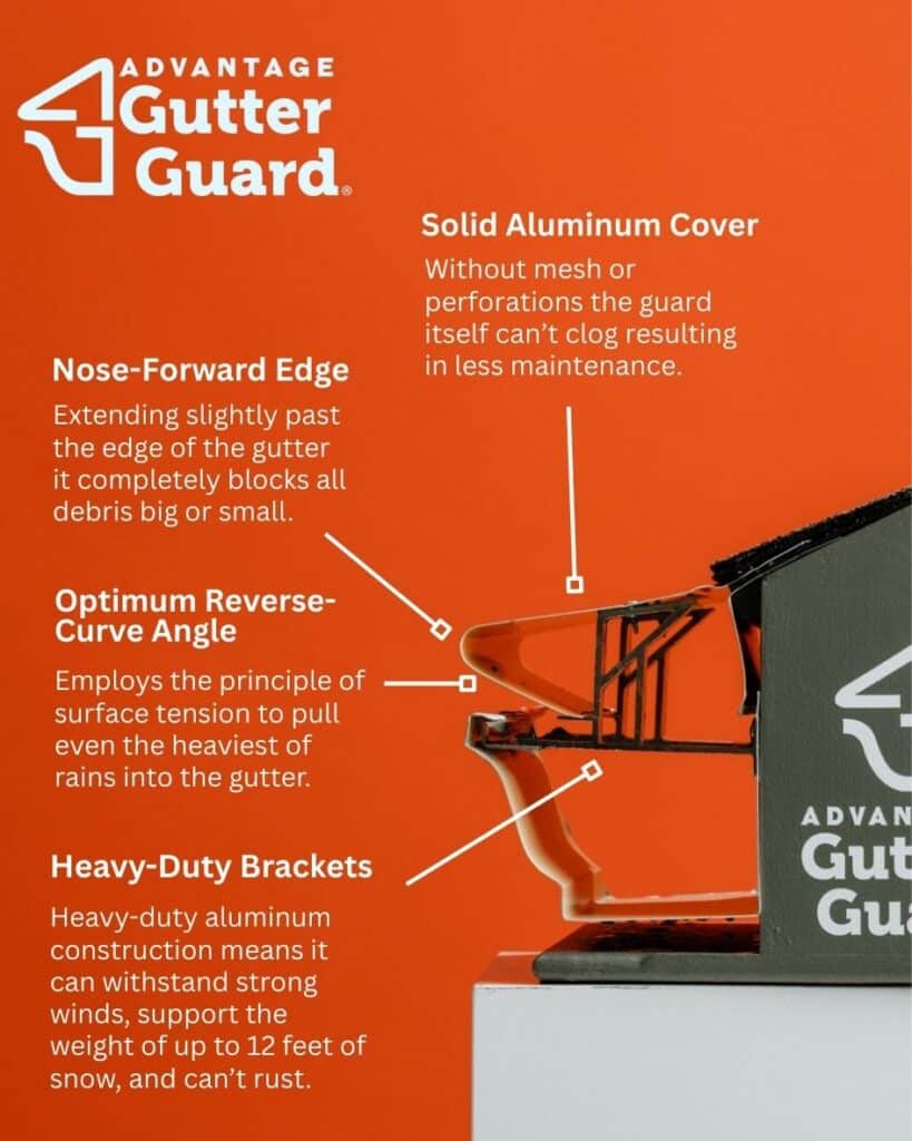 - Surface tension systems, like Advantage Gutter Guard®, guide water while keeping debris out and minimize maintenance.